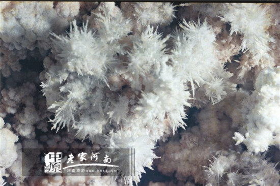 雪花洞的前身是一條發(fā)育在大約五億七千萬(wàn)年前的地下暗河,洞內(nèi)由石葡萄、石珊瑚、石花(即雪花石)等自然組成了一百七十三米的“雪花長(zhǎng)廊”,宛如一座地下水晶宮。
