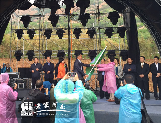 隨后,由駐馬店市旅游局局長(zhǎng)高峰先生和中國旅游報(bào)社社長(zhǎng)助理吳曉梅女士為采風(fēng)團(tuán)代表授旗。