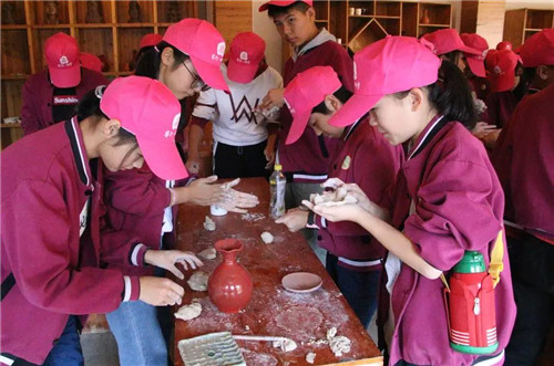 學生們來到陶瓷坊,通過制陶老師的講解,以及親身體驗了制陶的過程。在制陶的過程中,感受地域特色文化樹立民族自豪感。