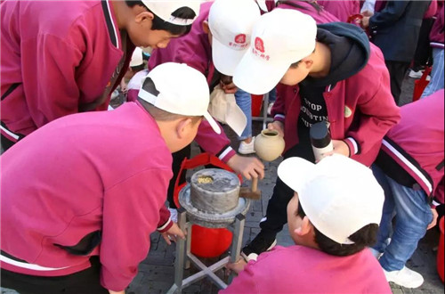 進入民俗文化村,孩子們在這里參觀了豫南民宅,了解農(nóng)耕生產(chǎn),感受茶竹文化,還分組體驗了中國傳統(tǒng)文化項目畫臉譜、磨豆腐、剪紙、泥塑、習茶藝等,傳統(tǒng)文化知識在孩子們心中生根發(fā)芽。