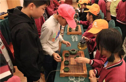 茶藝老師帶領學生們,走進中國源遠流長的茶文化之中,學習了茶禮以及泡茶,飲茶的知識。通過學習茶文化,學生們不僅領略了中國博大精深的茶文化,還從茶中品味了人生,懂得了道理,得到了行為規(guī)范。