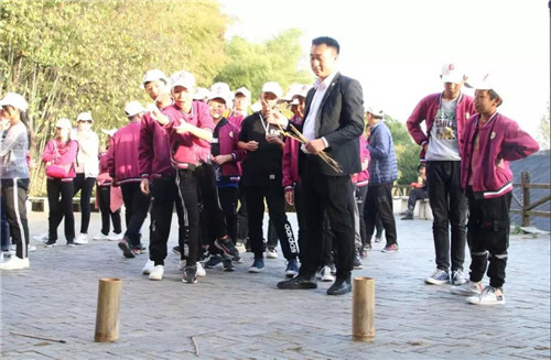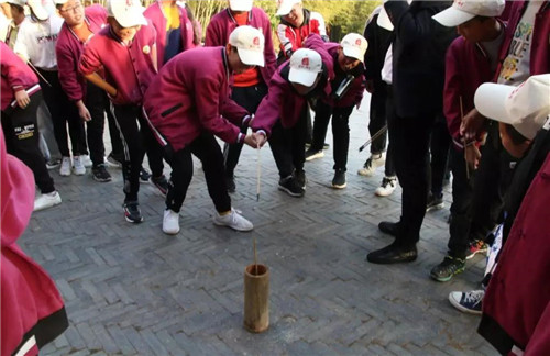學生們在民俗文化村,首先體驗了傳統(tǒng)擲壺游戲