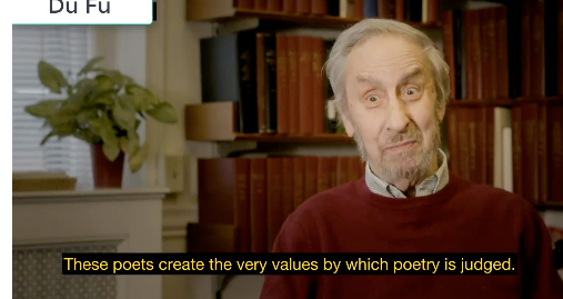宇文所安在片中說道:“我們不僅有但丁,有莎士比亞,還有杜甫。這些詩人創(chuàng)造了評(píng)判偉大詩歌的標(biāo)準(zhǔn)。”杜甫,距今 1200 多年,早于但丁,也早于莎士比亞。