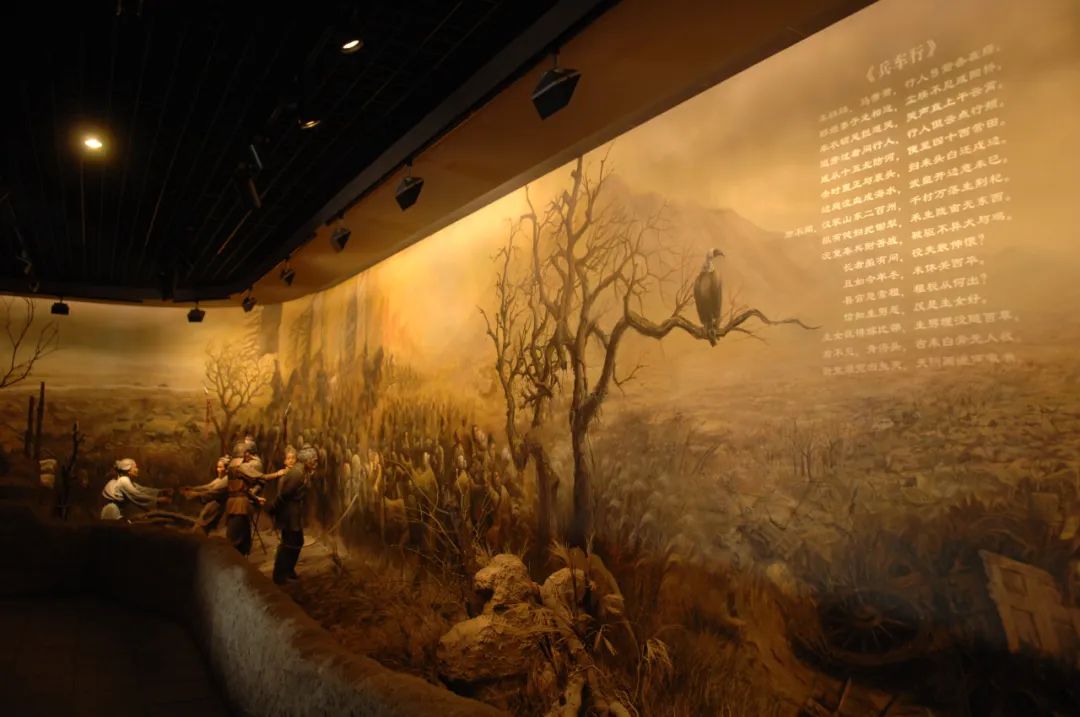 又過兩年,依然窘迫,為了生計(jì),杜甫接受了看管兵甲器仗的極低官職。年底,他前往奉先省家,就沿途見聞及小兒子夭折的痛苦心境,寫成了史詩般的長詩《自京赴奉先縣詠懷五百字》,其中的“朱門酒肉臭,路有凍死骨”成為千古名句。