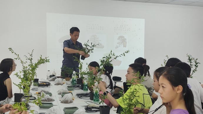 在荷香馥郁、盛夏絢爛的季節(jié)里,“荷月‘鄭’江南 ‘城’中風(fēng)雅”園林美學(xué)展在鄭州商代都城遺址博物院持續(xù)開展,作為此次展覽的延伸活動(dòng),“一‘扎’一世界:蘇派盆景扎綁技藝體驗(yàn)之旅”特別邀請(qǐng)來(lái)的拙政園專家引領(lǐng)參與研學(xué)的學(xué)生們近距離觸摸蘇派盆景。從選材、修剪到造型布局,盆景大師以匠人之心將自然之景濃縮于方寸之間。在盆景大師的指導(dǎo)下,小朋友化身為小小園藝師,手握剪刀與綁線,將創(chuàng)意與想象融入手中的盆景,創(chuàng)造出一個(gè)個(gè)獨(dú)一無(wú)二的藝術(shù)作品。一盆盆景,承載著他們對(duì)美的獨(dú)特感悟和對(duì)生活的無(wú)限熱愛。