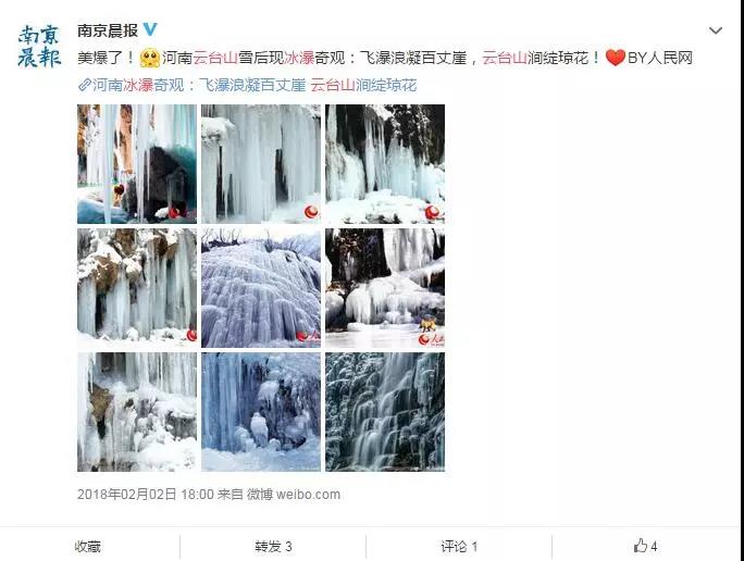近期,各大網(wǎng)絡(luò)被“云臺山冰瀑”持續(xù)刷屏,新華社記者獨家報道!新華視點、人民網(wǎng)百萬次曝光!光明網(wǎng)、搜狐、百度、騰訊、頭條等等,全國各大媒體不斷轉(zhuǎn)發(fā)點贊!“云臺山冰瀑”以壯觀驚艷迅速全國蔓延!