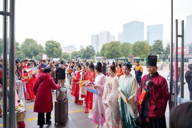 2024年1月15日下午,市文廣旅局?jǐn)y手漯河市各大景區(qū),在漯河西站舉行了一場(chǎng)主題為“誠(chéng)邀天下客 共度漯河年”的推廣活動(dòng)。活動(dòng)現(xiàn)場(chǎng),年輕小伙兒騎著“汗血寶馬”,姑娘們身穿漢服,在出站口一字排開給旅客送上雙匯火腿腸、北京方便面、衛(wèi)龍辣條和北舞渡胡辣湯料包等漯河特色美食,向旅客展示漯河豐富的美食文化,讓人倍感親切。不少旅客連聲贊嘆:“漯河好暖心,要旅游來漯河!”