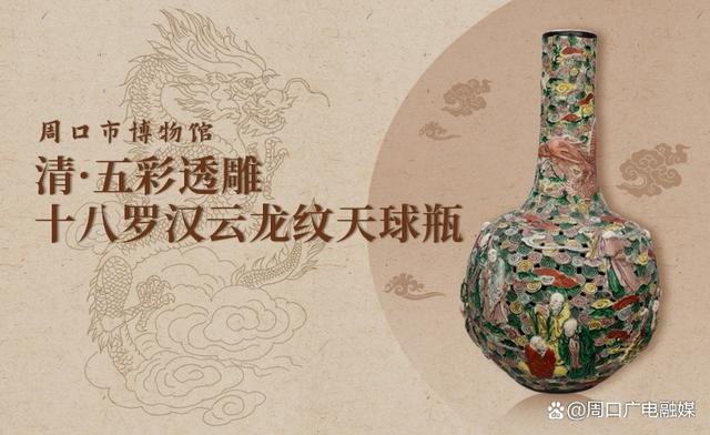 本次發(fā)售的“清代五彩透雕十八羅漢云龍紋天球瓶”本尊現(xiàn)藏于周口市博物館,其不僅精妙地展現(xiàn)了清朝的時代審美,更是將中華文化的包容和造物技藝發(fā)揮地淋漓盡致。