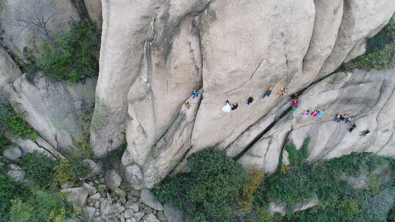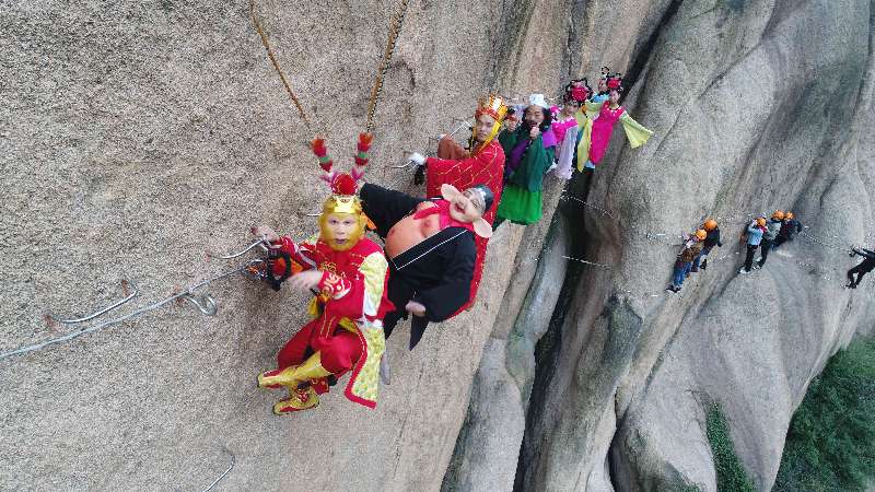 雙11河南情侶嵖岈山拍絕壁婚紗 悟空師徒四人攜眾仙女圍觀祝福