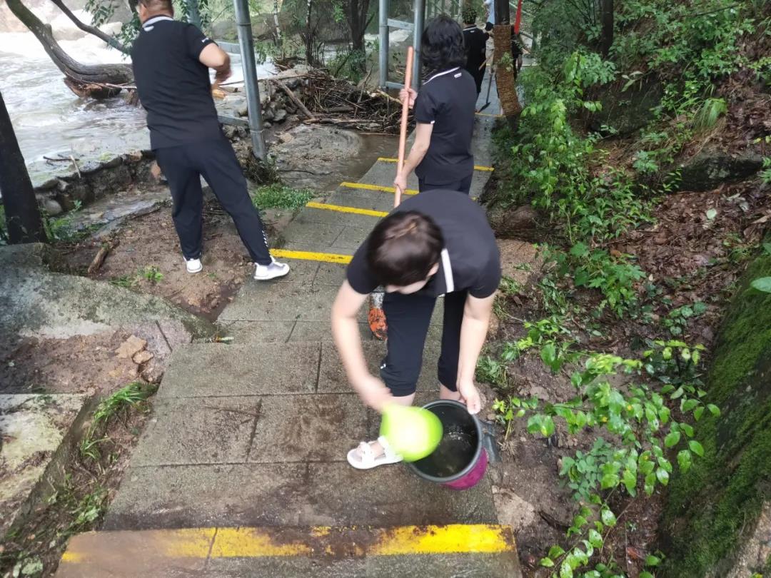 8月2日早上6時,景區(qū)全體工作人員,沿路全線排查,清理暴雨過后的淤泥、枯枝。確保給游客提供安全、干凈的游覽環(huán)境。