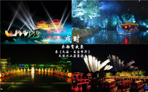 結(jié)束了一天的喧囂,夜晚的風(fēng)漸漸涼了下來。新人們可以乘船看《大宋·汴河燈影》,再來到景龍湖畔欣賞水上實(shí)景演出《大宋·東京夢(mèng)華》,感受悠長(zhǎng)意境。