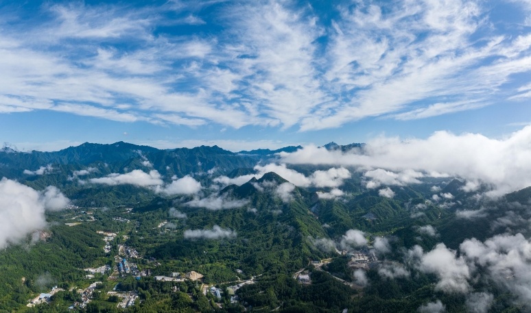 夏日的一場暴雨過后,河南省南陽市西峽縣處處山青水碧、云霧縹緲,3454平方公里的區(qū)域面積上,綠水青山涵養(yǎng)氣象萬千。