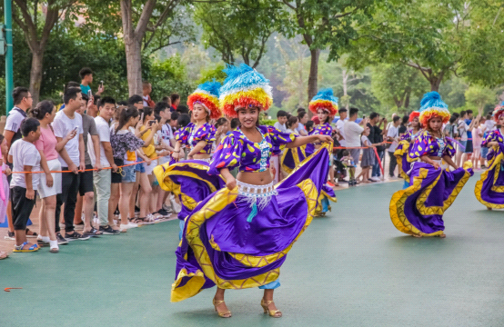 7月1日-2日,曾登上央視、世博會(huì)的“花開(kāi)五洲 世界風(fēng)情”舞蹈團(tuán)給游客帶了專業(yè)的舞蹈盛宴,踢踏舞、弗拉門戈、宮廷舞等,每一種異域舞蹈都為狂歡增添動(dòng)感節(jié)奏。