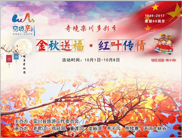 “國慶節(jié)·我跟祖國說句心里話”,“2萬斤山果贈游客·共享金秋豐收喜悅”,“楓葉寄相思·明月傳真情”,“免費(fèi)為多代同游家庭拍全家福”等諸多感恩回饋活動盡在“金秋送福·紅葉傳情”奇境欒川多彩季系列活動。