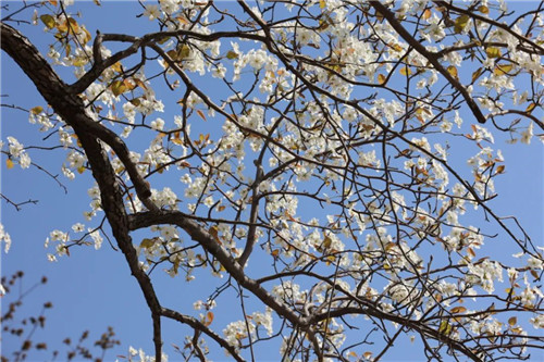 千樹梨花千樹雪,十里春風(fēng)十里香,滿山盛開的梨花,猶如紛飛落下的白雪,又像一望無際的湖水,在春風(fēng)吹拂下泛起白色浪花。