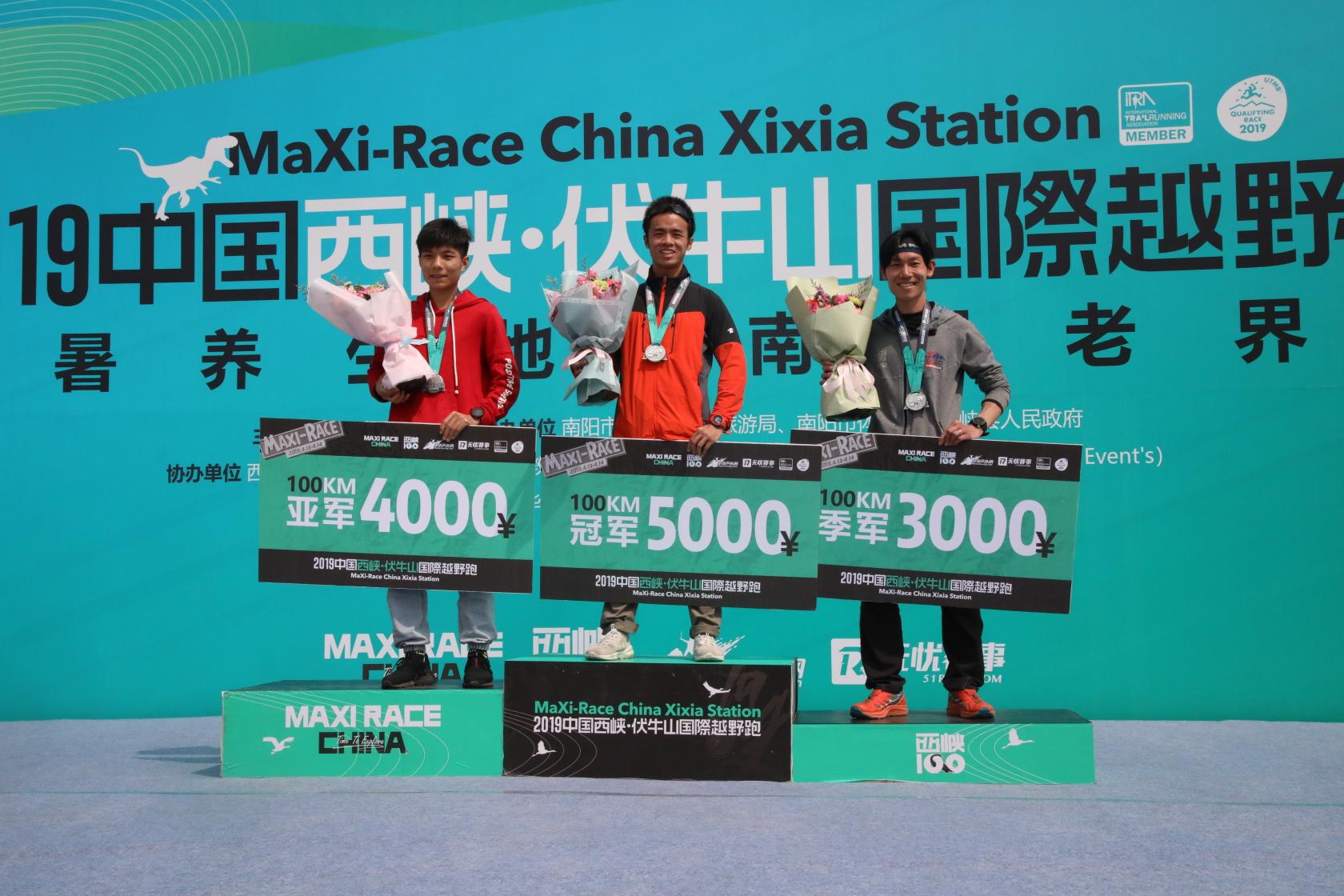 本次越野賽于4月13日上午8時(shí)30分在西峽老界嶺景區(qū)鳴笛起跑,經(jīng)過一個(gè)晝夜的激烈角逐,來(lái)自湖南省鳳凰縣的趙家駒、浙江省湖州市的李亞分別以11小時(shí)51分14秒、15小時(shí)52分47秒的成績(jī)獲男女100公里組冠軍,來(lái)自廣西師范大學(xué)漓江學(xué)院的莫釗宇、北京市的羅富元分獲男子100公里亞軍和季軍,女子100公里亞軍和季度分別被貴州省貴陽(yáng)市選手吳敏、朝鮮選手金春姬奪得;50公里組男女冠軍被青海省西寧市的黃印斌、湖北省丹江口市的朱輝紅奪得,成績(jī)分別是4小時(shí)37分41秒、6小時(shí)01分52秒,來(lái)自法國(guó)的Cointre Cyril、河南省開封市的李冰榮獲男子50公里組亞軍和季軍,女子50公里組亞軍和季軍分別被來(lái)自湖北省襄陽(yáng)市的王建榮、湖南省岳陽(yáng)市的陸麗玖奪取。