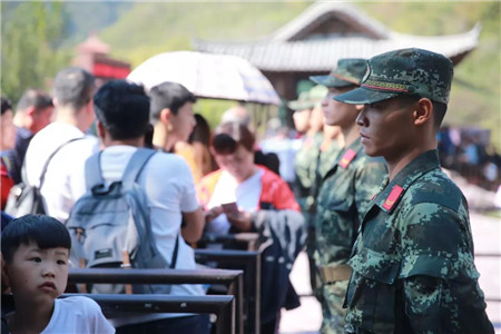 為應(yīng)對客流高峰,景區(qū)多方力量全力保障旅游安全和秩序,加強(qiáng)車輛疏導(dǎo)、安全巡查、咨詢服務(wù)等人員配置,各項(xiàng)接待工作有序進(jìn)行,游客井然有序的入園和游覽。