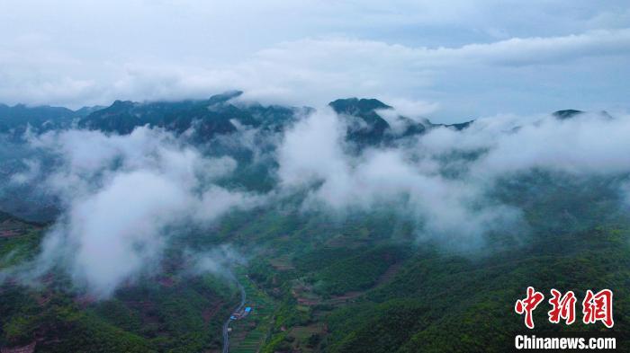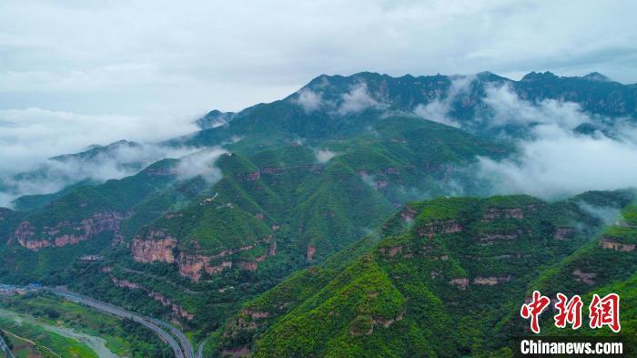 7月29日,河南省林州市的紅旗渠景區(qū)迎來(lái)雨后云海景觀,宛如一幅壯美畫(huà)卷。圖為翠綠的群山被云海環(huán)繞。(無(wú)人機(jī)照片)王梓驊 攝