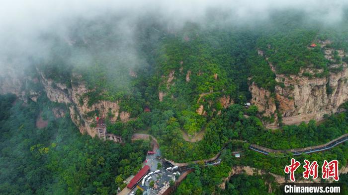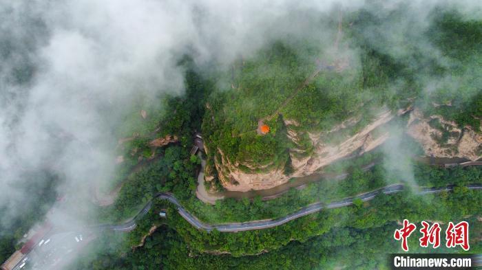 7月29日,河南省林州市的紅旗渠景區(qū)迎來(lái)雨后云海景觀,宛如一幅壯美畫(huà)卷。圖為云海中的紅旗渠。(無(wú)人機(jī)照片)王梓驊 攝
