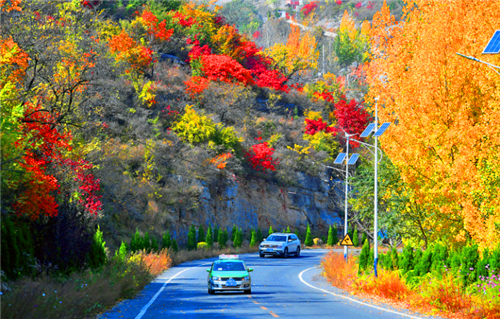 紅的楓葉,黃的荻花,讓道路兩側瑟瑟秋意平添了幾分暖意。一路開去,不僅有自然風光,還有人文風景。隨處停下,你或許可以看到養(yǎng)蜂人正在勞作,或者暮色中的牧羊人溫和的笑容。如果你喜歡古村落,吳家山莊、公川寨等均可前往探訪;如果你想要自然風景,附近的嵩陰風景區(qū)是個不錯的選擇,8000多畝油松遮天蔽日,大片的草甸風景正好。