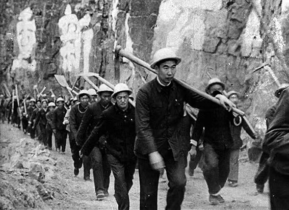 二十世紀(jì)六十年代,河南林縣(今林州市)55萬人民在黨的領(lǐng)導(dǎo)下,硬是靠著一錘一釬一雙手,絕壁穿石、挖渠千里,在壁立千仞的太行山上削平1250座山頭、鑿?fù)?11個隧洞、架設(shè)152座渡槽,建成了長達(dá)1500公里的“人工天河”紅旗渠,解決了60萬人飲水,54萬畝耕地灌溉的問題,英雄的林縣人民用自己的拼搏和汗水詮釋了奮斗的真諦,也把中華民族的一面精神旗幟,插在了太行之巔。