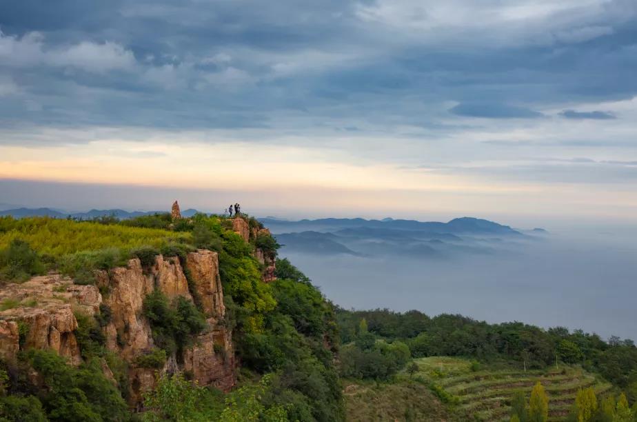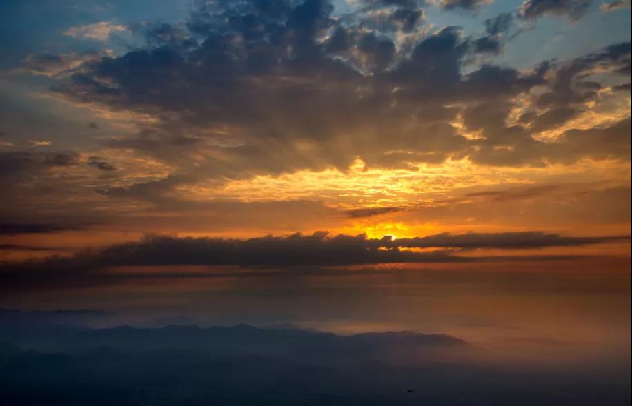 晨曦的紅暈將云層染成了浪漫的粉紅色,在這里,秋意還未曾完全襲來。山澗的綠和金燦燦的陽光相互打趣著,站在山端,眺望遠(yuǎn)方,遇見早秋的朝霞和翻騰的云海,目之所及,美景如畫。在這里,喜歡日出和云海的你,這是極佳的觀賞之處,可以盡情享受與大自然相擁的愜意。