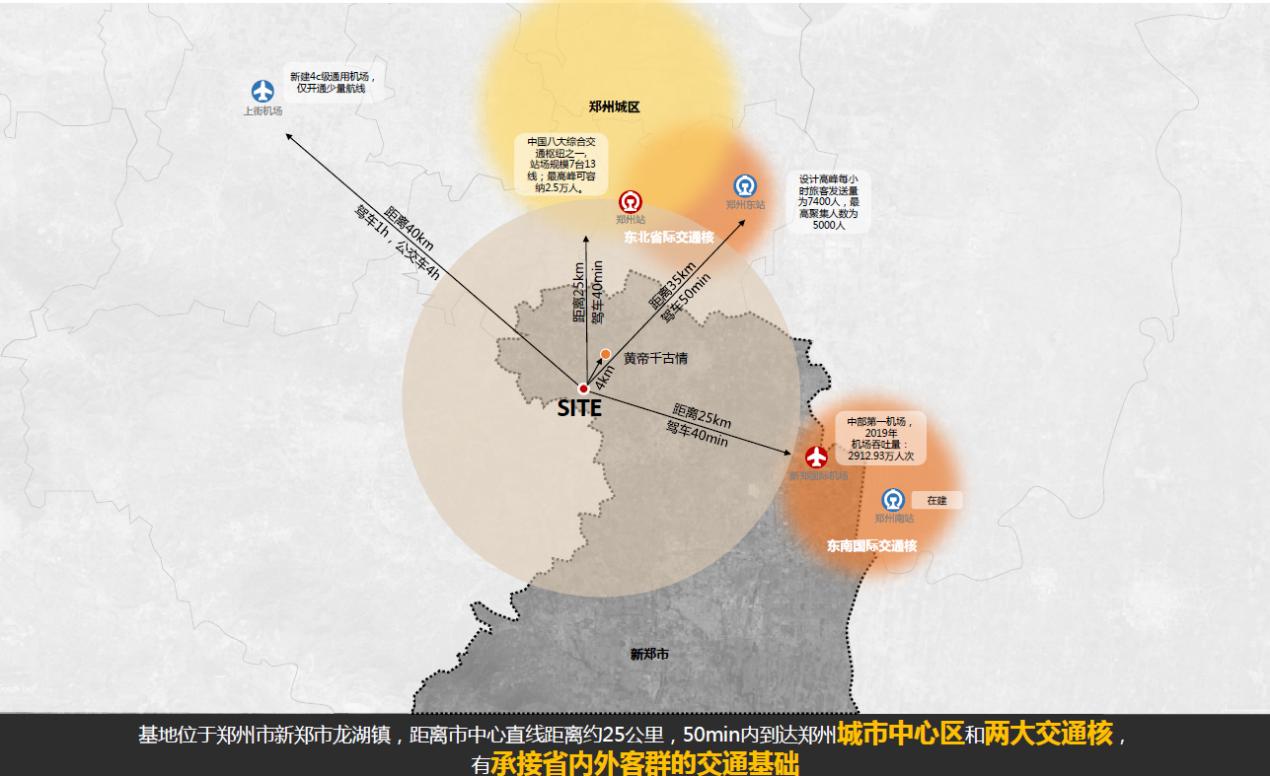 該項目北距黃帝千古情景區(qū)3km,處于黃帝千古情中心板塊(鄭州市32個中心板塊之一)的輻射范圍,是圍繞黃帝文化做大做強黃帝文化IP,實現(xiàn)以黃帝文化演藝為核心,差異化提供高品質的大型夜宿夜游項目,包括黃帝文化體驗、黃帝文化夜游(主題光影秀)、軒轅文創(chuàng)、《黃帝內經(jīng)》養(yǎng)生膳食、自然研學教育、戶外無動力親子樂園等全產(chǎn)業(yè)鏈文旅產(chǎn)品,具有帶動吃住行游購娛、產(chǎn)學研康樂體等相關要素的綜合發(fā)展,激活“南動”區(qū)域的板塊價值。