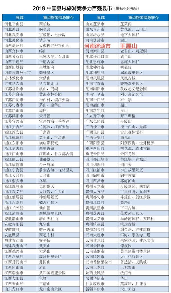 讓我們一起走進(jìn)2019中國(guó)縣域旅游競(jìng)爭(zhēng)力百?gòu)?qiáng)縣市——濟(jì)源市