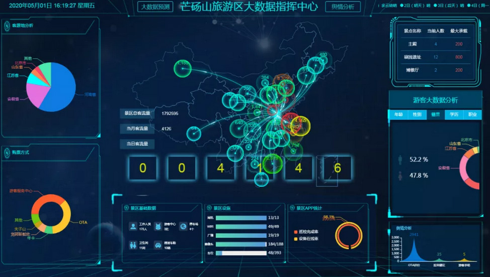 一是將景區(qū)在園人數(shù)等信息與游客實(shí)時(shí)共享。五一開始,芒碭山旅游區(qū)將智慧旅游平臺的實(shí)時(shí)客流查詢、智慧停車管理、流量控制告警等信息,通過小程序、自媒體與游客共享,方便游客實(shí)時(shí)了解芒碭山游客在園量,為游客避開高峰期提供了實(shí)時(shí)數(shù)據(jù)。
