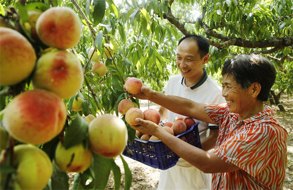 “桃子收獲的季節(jié),前來收購的客商絡(luò)繹不絕,車水馬龍,大桃遠銷至山東、廣州、上海等地,同時我們鎮(zhèn)鼓勵村民發(fā)展桃木車載掛件飾品、紙箱包裝,旅游觀光、飲食服務(wù)、交通運輸?shù)犬a(chǎn)業(yè),‘桃經(jīng)濟’日漸成為張市鎮(zhèn)農(nóng)民增收致富的新經(jīng)濟增長點。”張市鎮(zhèn)鎮(zhèn)長谷海風(fēng)深有體會地介紹。