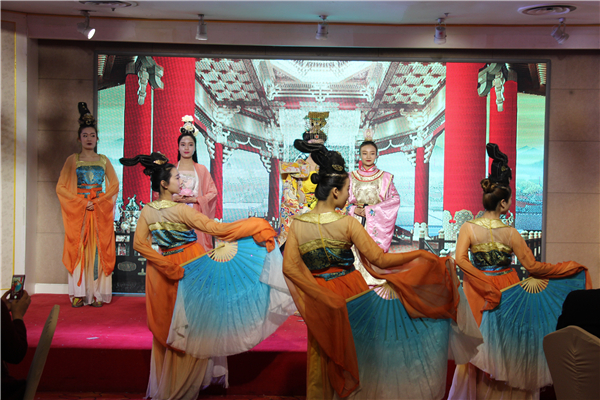 洛陽市旅游發(fā)展委員會相關工作人員現(xiàn)場推介龍門高山牡丹園