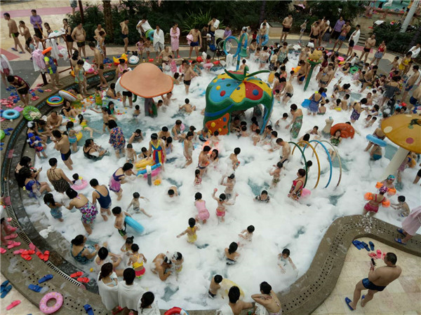 6月30日,堯山福泉溫泉“2018夏季冰泉節(jié)”盛大開(kāi)幕,活動(dòng)現(xiàn)場(chǎng),游客泡冰泉、搬冰塊、砸冰塊降溫納涼.....熱鬧非凡。熱身泉四周用五顏六色的大冰塊堆砌,冰霧繚繞,宛如一幅冰火兩重天的場(chǎng)景 ,引起市民圍觀拍照。