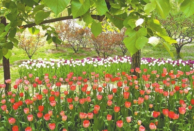 洛陽的郁金香花園是典型的“雙花斗艷”之地,四月里牡丹的國色天香令人流連忘返,四月底五月初盛開的郁金香花更顯優(yōu)雅清新,牡丹與郁金香交織在一起,演繹著繁華奔放與清新優(yōu)雅兩種不同的風格。郁金香花園里的建筑多為荷蘭風格,起伏的小型草原,精致的白色雕像群,高大的荷蘭風車,仿佛置身于荷蘭的某個風情小鎮(zhèn);遠處熱鬧的游樂場,郁郁蔥蔥的綠樹,潺潺的流水,體現(xiàn)出中國風格的園林之美。安靜與繁華在這里并存,十分愜意。據(jù)介紹,洛陽郁金香花園的花卉種植面積近150畝,是人們賞花游玩、情侶傳達愛情信息、感悟異國風情的一個好去處。