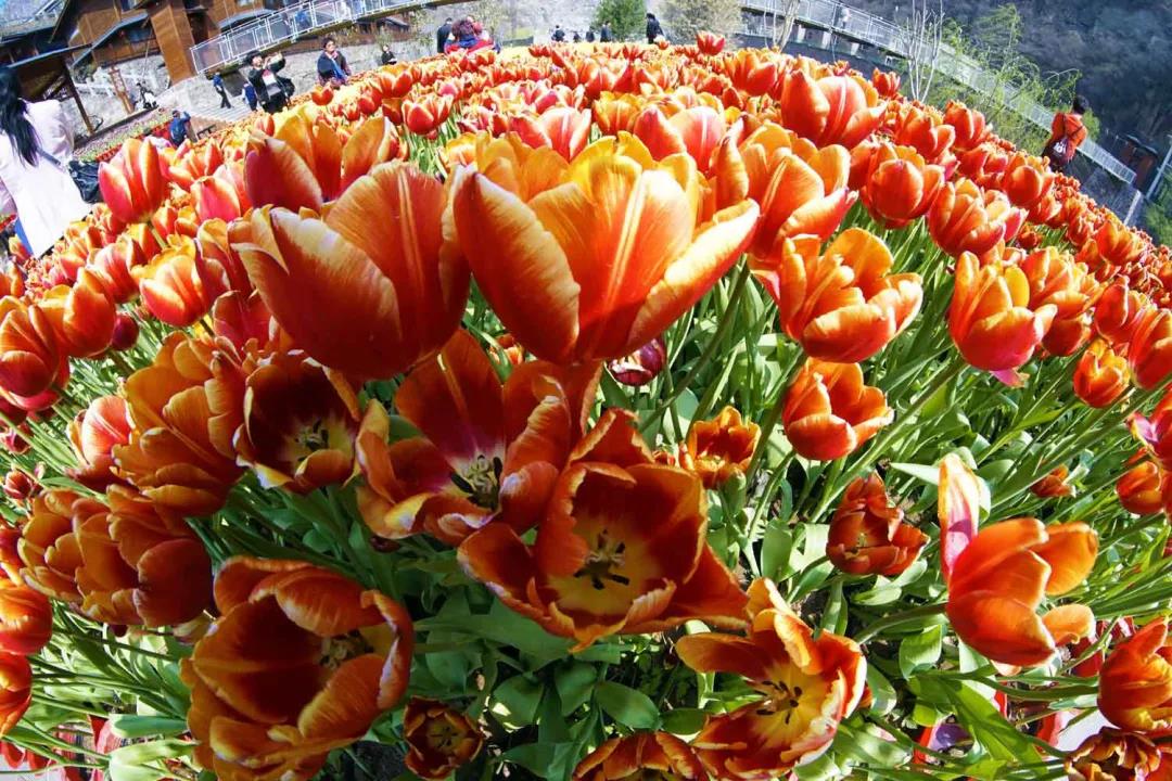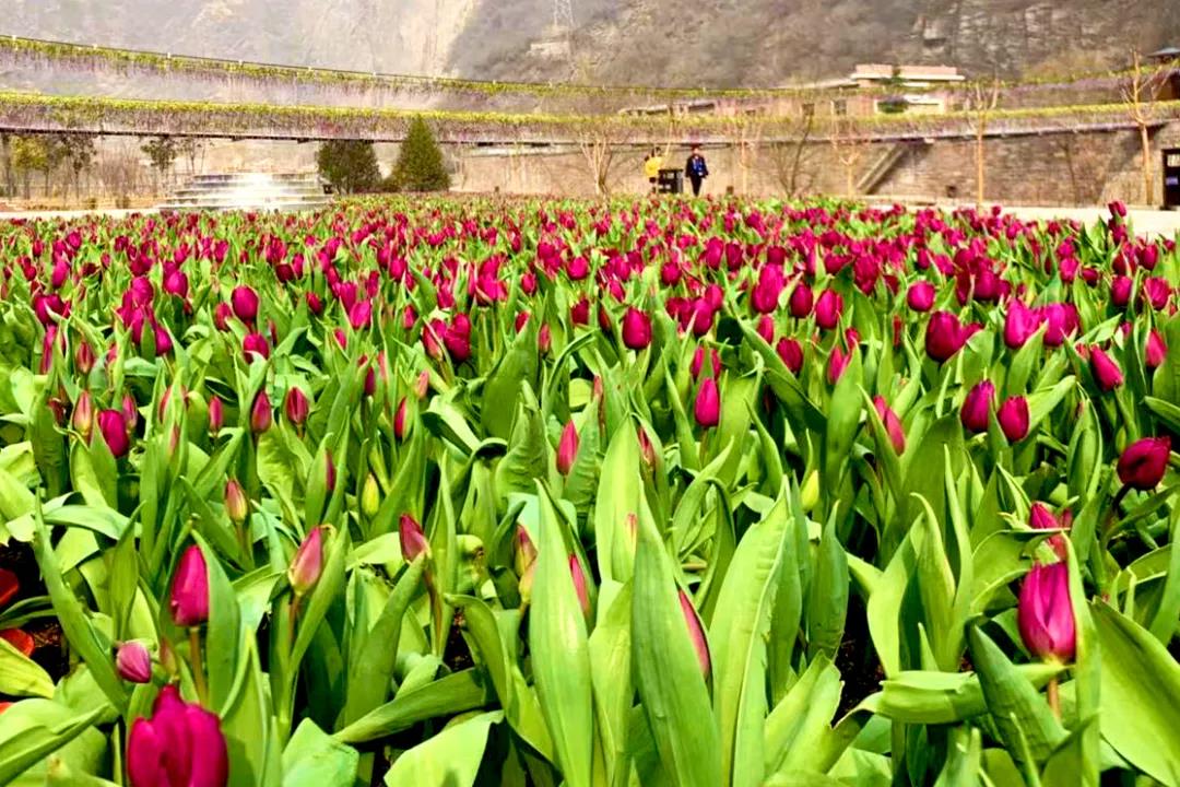 由于優(yōu)越的氣候條件和精心的培育,寶泉百萬株名貴的郁金香成為春季最早開放的花朵。