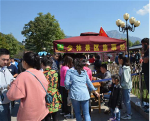 為解決游客購(gòu)票排隊(duì)時(shí)間長(zhǎng)的問(wèn)題,嵩山景區(qū)新增近30個(gè)臨時(shí)售票點(diǎn),極大地縮短了游客的購(gòu)票時(shí)間,購(gòu)票時(shí)間從原有的10分鐘縮短為3分鐘。黃金周期間景區(qū)游客激增,為讓游客快速進(jìn)入景區(qū),嵩山景區(qū)合理部署,增加了團(tuán)隊(duì)通道、散客通道,無(wú)障礙通道,縮短游客高峰時(shí)段進(jìn)園時(shí)間,為游客安全旅游提供保障。