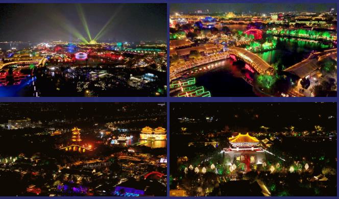 隨著演出場次的增加,園內(nèi)產(chǎn)品的豐富,越來越多的游客玩到晚上還遲遲不愿離去,夢幻的燈光、朦朧的夜景、熱鬧的街頭,構(gòu)建出一幅千年前的繁華盛景。