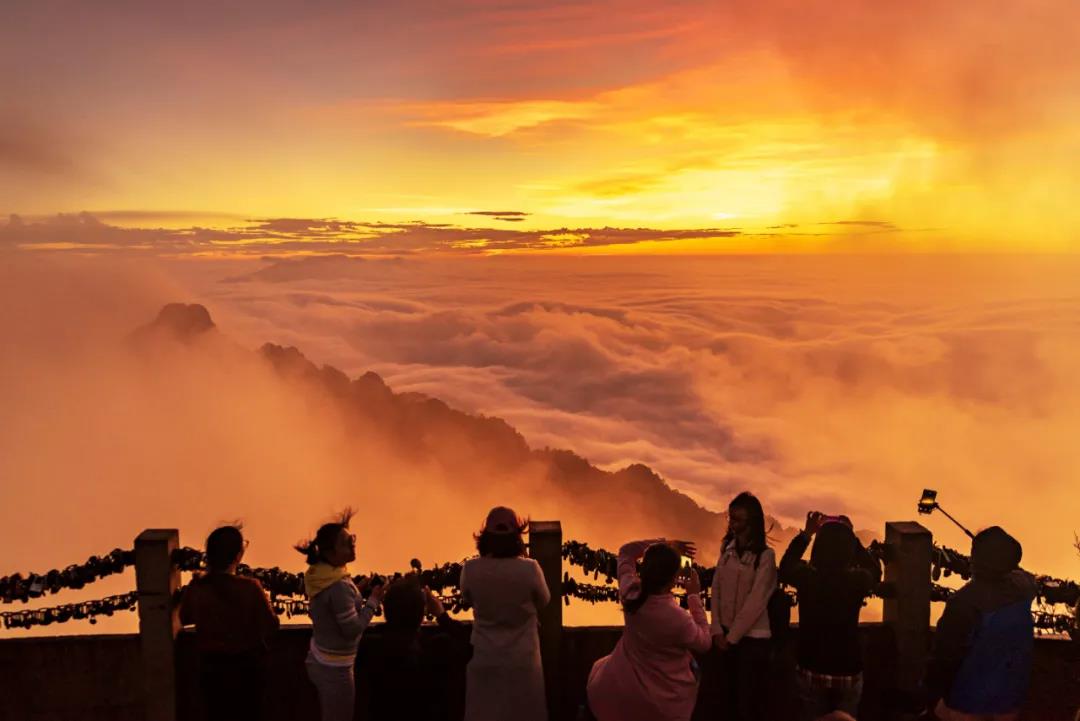 在玉皇頂觀日出,是每位游客來此必做的事,霧海漫漫的云海奇觀,還有連綿起伏的山巒之勢,構成一幅美麗的畫卷,幸運的話,還可以觀賞到罕見的“佛光”