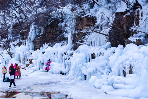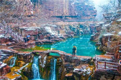 冬天的云臺山銀裝素裹,千米冰雪群,紛紛的白雪,一切靜謐而美好,恍惚間,仿佛穿越了時空。