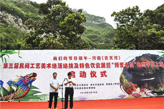 啟動(dòng)儀式上,嗩吶、抖空竹等多項(xiàng)民俗絕技表演你方唱罷我登臺(tái);糖藝制作、烙畫、剪紙、泥塑等多種民間工藝美術(shù)作品讓人眼花繚亂,目不暇接。滑縣萬古文盛館羊肉鹵、大宋官茶、道口燒雞、博愛景亮雜拌、楊記小車牛肉等多種河南老字號(hào)美食齊聚青天河,讓游客親身體驗(yàn)了非物質(zhì)文化遺產(chǎn)的精湛和魅力,切身感受了民間優(yōu)質(zhì)文化的精華,喚起了全國游客共同的民族文化記憶。