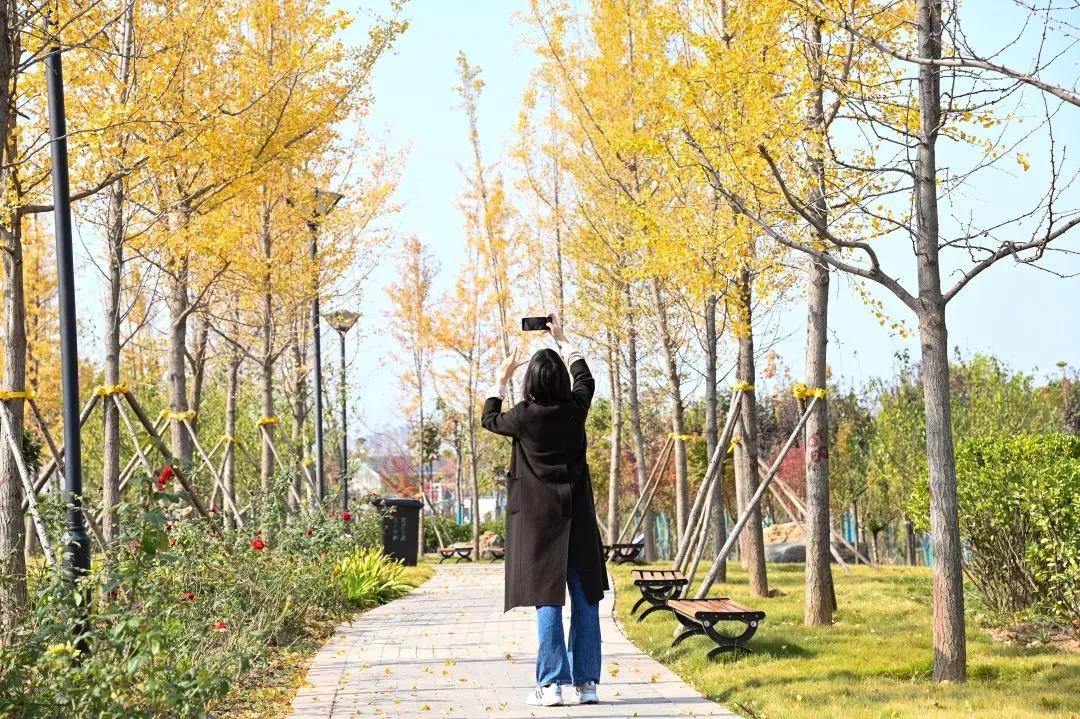 陽光透過樹葉的縫隙,灑在片片金黃的銀杏樹上,微風(fēng)吹動樹葉發(fā)出“沙沙”的聲響,讓我們坐在樹下的長椅上,傾聽風(fēng)吹過的聲音,感受這濃濃的秋景。
