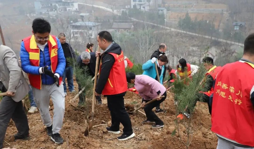三月的欒川,嫩柳吐綠、春意盎然,在美麗的撥云嶺村植樹(shù)現(xiàn)場(chǎng),一片熱火朝天的景象。單位工作人員,志愿者和當(dāng)?shù)卮迕褚煌,分工協(xié)作,默契十足,有的揮鋤打穴,有的扶苗填土、有的培土施肥、有的踩實(shí)澆水,每一個(gè)環(huán)節(jié)都做得認(rèn)真到位。
