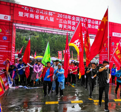 最后,隨著現(xiàn)場領(lǐng)導共同宣布“2018年全國群眾登山健身大會暨河南省第八屆‘三山同登’群眾登山健身大會”啟動,發(fā)令槍一聲令響,參賽登山運動員開始登山。