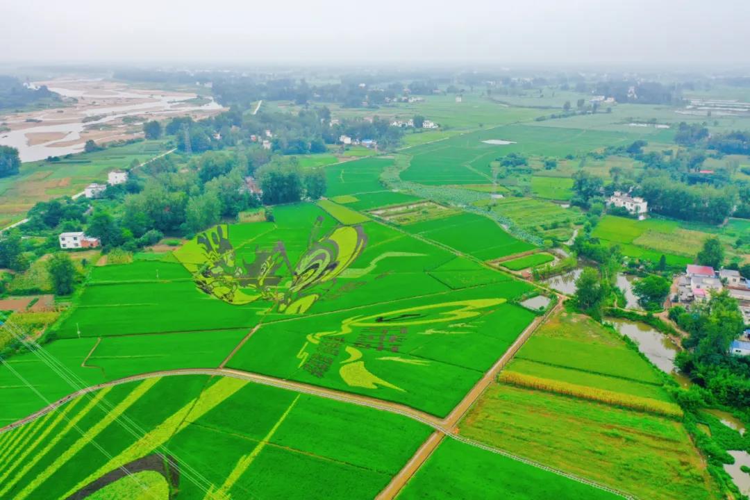 大別山農業(yè)藝術公社一大片彩色稻田翻起稻浪,