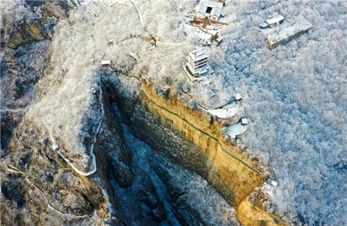 大寒節(jié)氣過后,云臺(tái)山迎持續(xù)降雪,茱萸峰白雪皚皚現(xiàn)云海霧凇,重陽閣登高賞雪覽山水畫卷,峽谷內(nèi)千米冰瀑雪景顏值爆表。