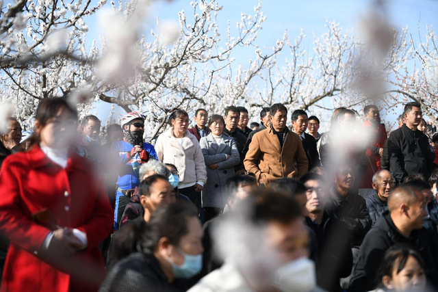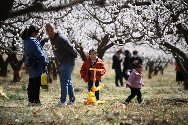 游客們循香而來,享受杏花帶來的春的氣息。 張春光 攝