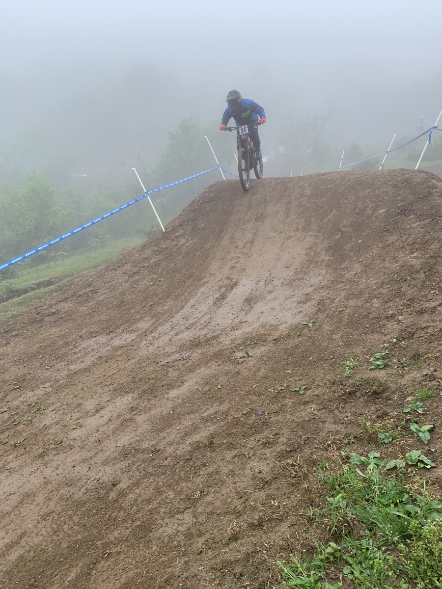 新縣站作為速降“國賽”的開篇之作,從賽道設(shè)置到后勤保障,當(dāng)?shù)囟甲隽司臏?zhǔn)備。賽道起點(diǎn)設(shè)在海拔1011米的新縣第一峰黃毛尖,終點(diǎn)設(shè)在風(fēng)景如畫的小毛尖。賽道總體落差291米,全長1650米,賽道內(nèi)密布米級墜臺、亂石區(qū)、原生樹根區(qū)、陡坡路段等55個(gè)技術(shù)點(diǎn),緊湊且元素豐富。賽前和賽中,組委會特別安排了10多輛皮卡車往返于起終點(diǎn)之間,運(yùn)送參賽車輛,此舉大大節(jié)省了選手們的時(shí)間和體能,增加了大家訓(xùn)練的次數(shù),從而更利于熟悉、了解賽道,這一貼心服務(wù)也得到了選手們的交口稱贊。
