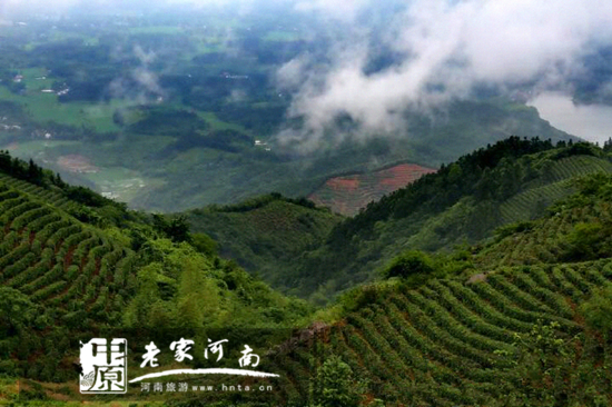 太陽升起時,“海面”泛起金光,溫度漸漸上升,這時煙云飄動,山峰似乎也在移動,變化無常的云海慢慢散去,露出了茶園的真面目。