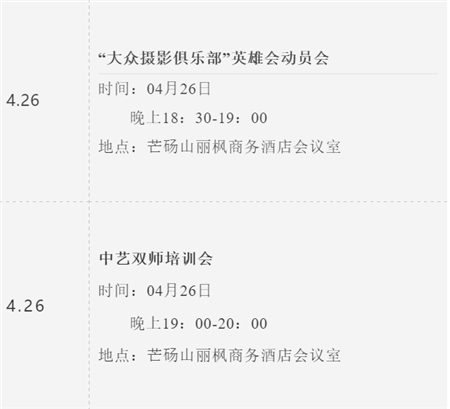 第四屆芒碭山攝影季活動日程安排: