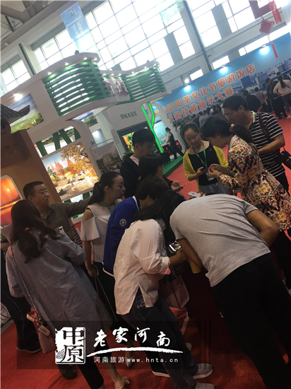 現(xiàn)場通過發(fā)放宣傳資料,主動與參展商、游客互動,宣傳濟(jì)源旅游,宣傳推廣“好茶在中國·品茶在濟(jì)源”的理念。口感上乘的盧仝茶+神奇的盧仝茶具,吸引了很多當(dāng)?shù)厥忻窦皡⒄股,絡(luò)繹不絕的來到展位前品嘗和了解,原定5月1日結(jié)束的展會,由于所帶旅游商品都被市民搶購一空,只好4月29日提前撤展。