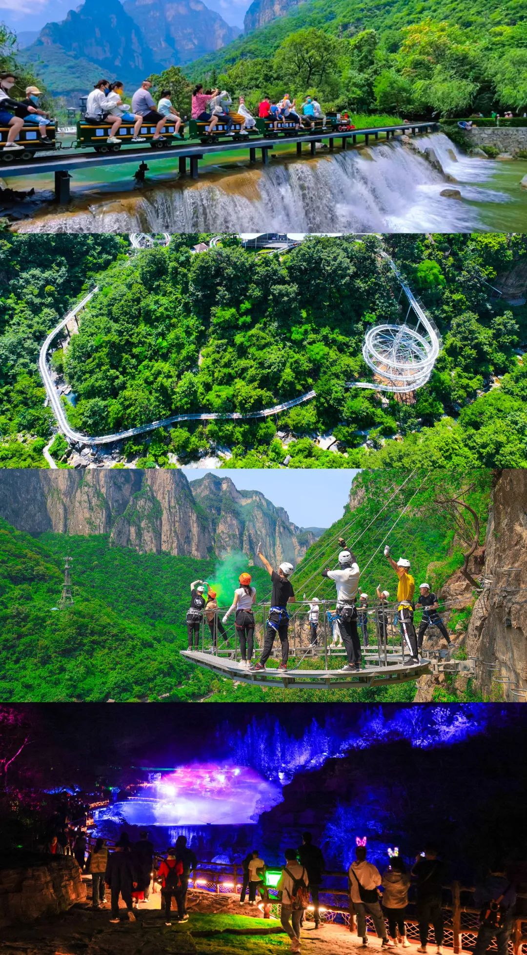 休閑愜意軌道小火車、驚險(xiǎn)刺激叢林滑道、絕壁云臺山攀巖、水上樂園……云臺山“幻光森林”開啟國慶浪漫之夜。